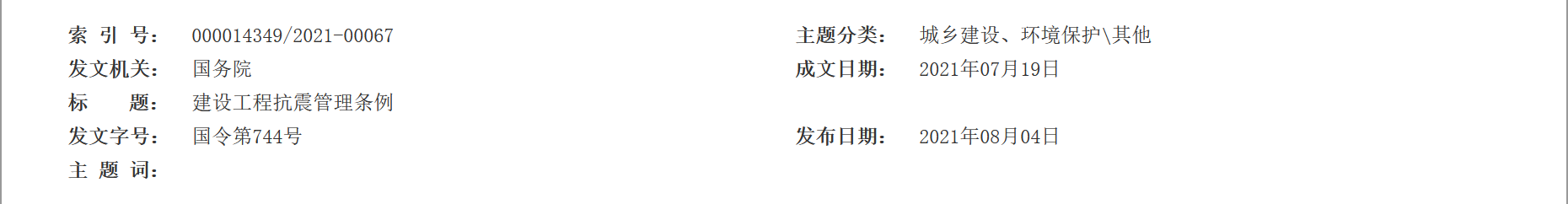 《建设工程抗震管理条例》已经2021年5月12日国务院第135次常务会议通过,现予公布,自2021年9月1日起施行。